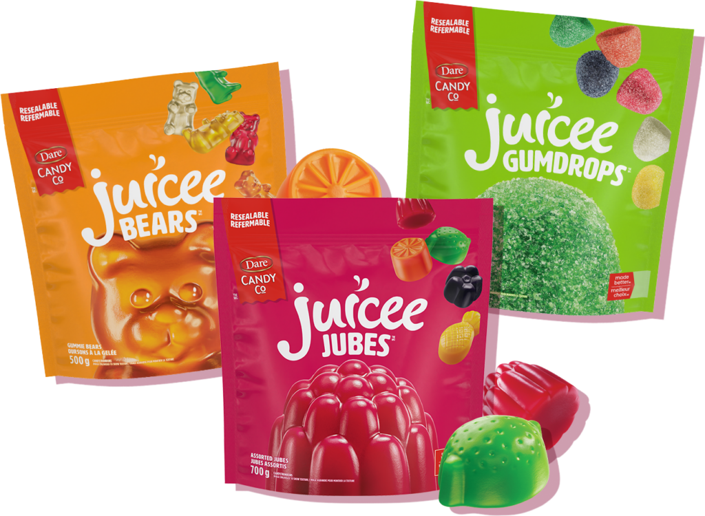 Enjoy our JUICEE family of candy classics, including favourites such as JUICEE BEANS, GUMDROPS, BEARS, JUBES and our NEW GUMM-EH’S!