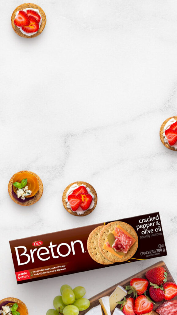 Enjoy the light, crispy and irresistible taste of Breton crackers. These delicious crackers are made with whole wheat and contain no artificial colours, flavours or preservatives, and they’re low in saturated fat. That’s a lot to feel good about.