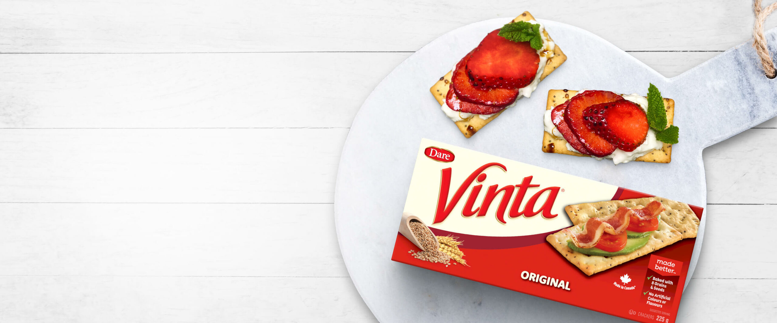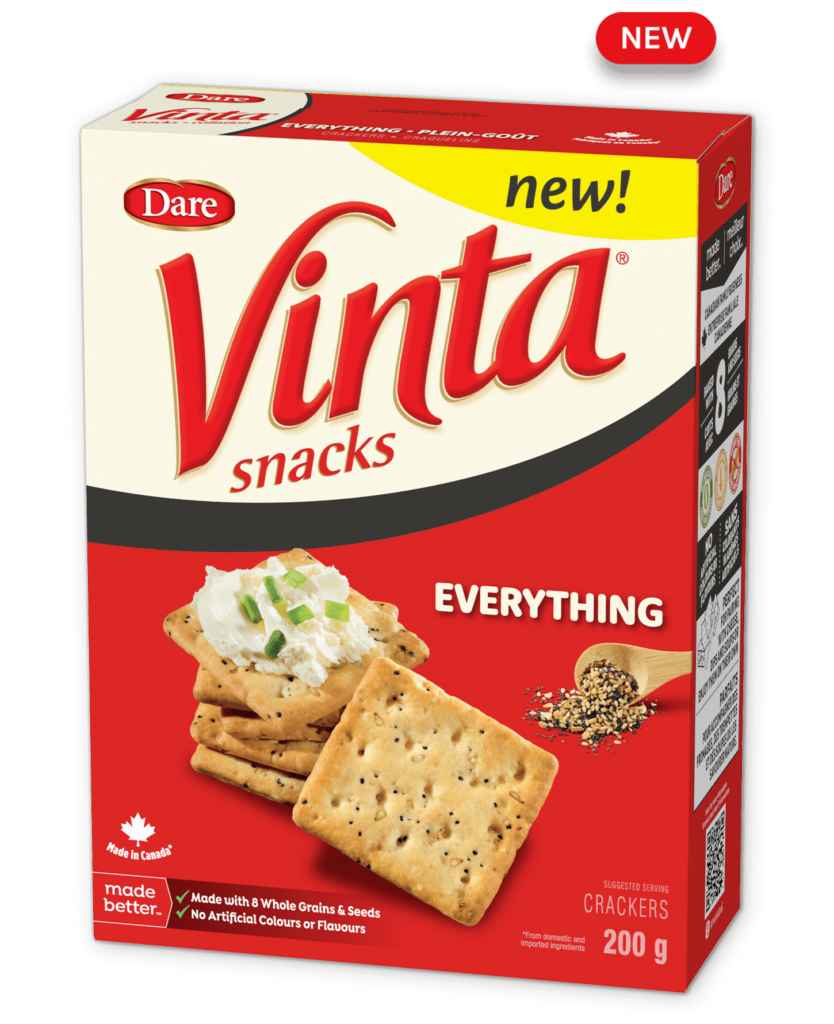 Satisfy your snack craving with our newest flavour of Vinta crackers. Made with a secret recipe including a unique texture and combination of grains and seeds, you won’t be able to stop with just one!