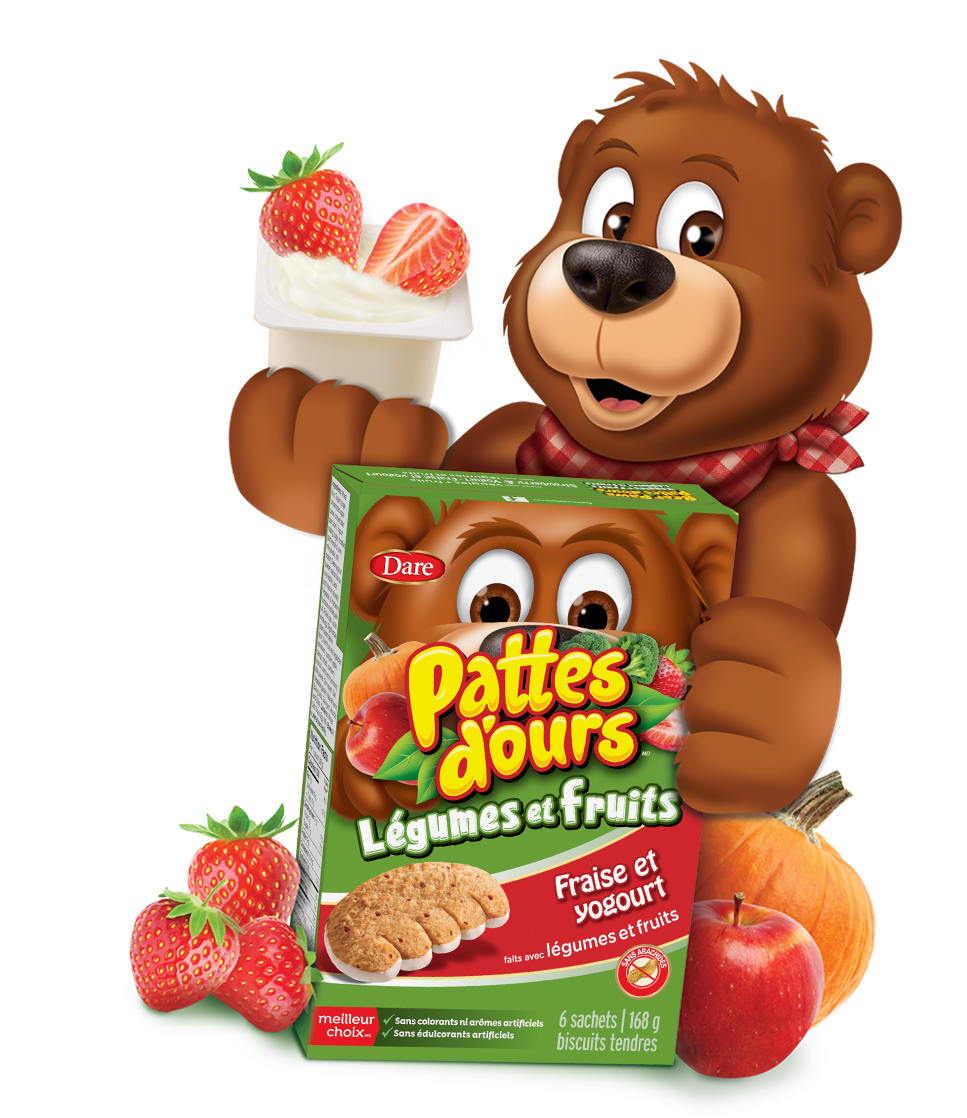 Goûtez à toute la gamme des Pattes d’ours Légumes et fruits! Ces délicieux biscuits sont emballés individuellement afin de demeurer tendres et moelleux. Vous pouvez les utiliser dans la boite à lunch pour une collation rapide, ou les savourer à la maison ou sur le pouce.
