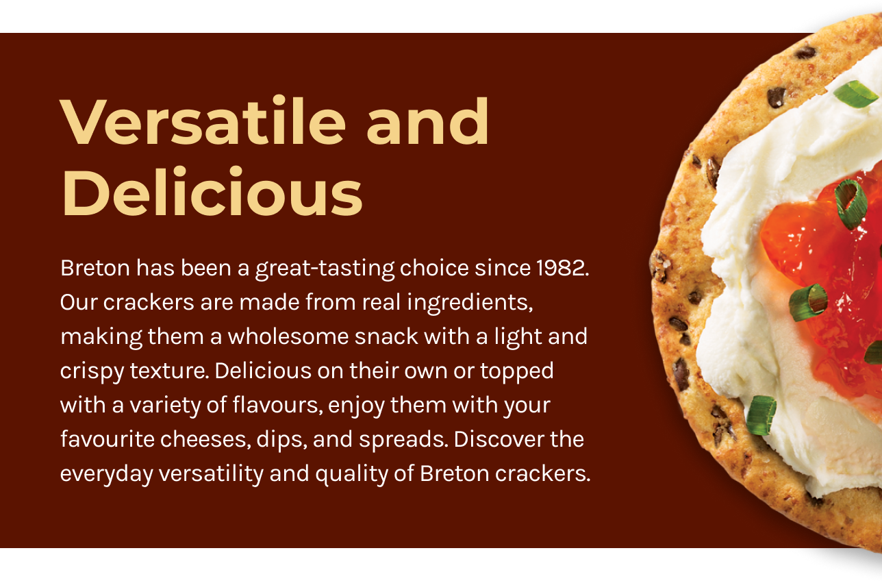 Breton serves up a variety of delicious, versatile crackers that pack in real goodness. Bring your favourite toppings together with Breton.