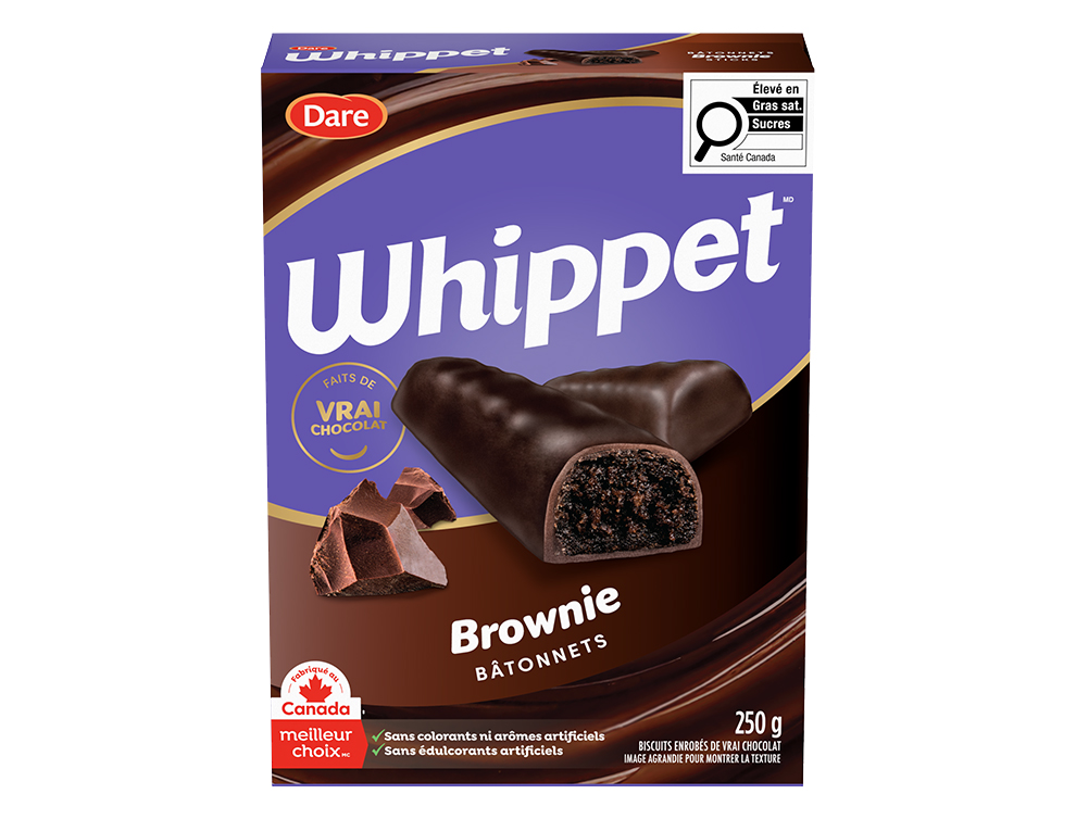 Les biscuits Whippet sont offerts en plusieurs succulentes saveurs et différents formats et grosseurs. Que ce soient nos Biscuits classiques, nos Bâtonnets amusants ou nos Minis format collation, il y a un Whippet pour toutes les occasions.