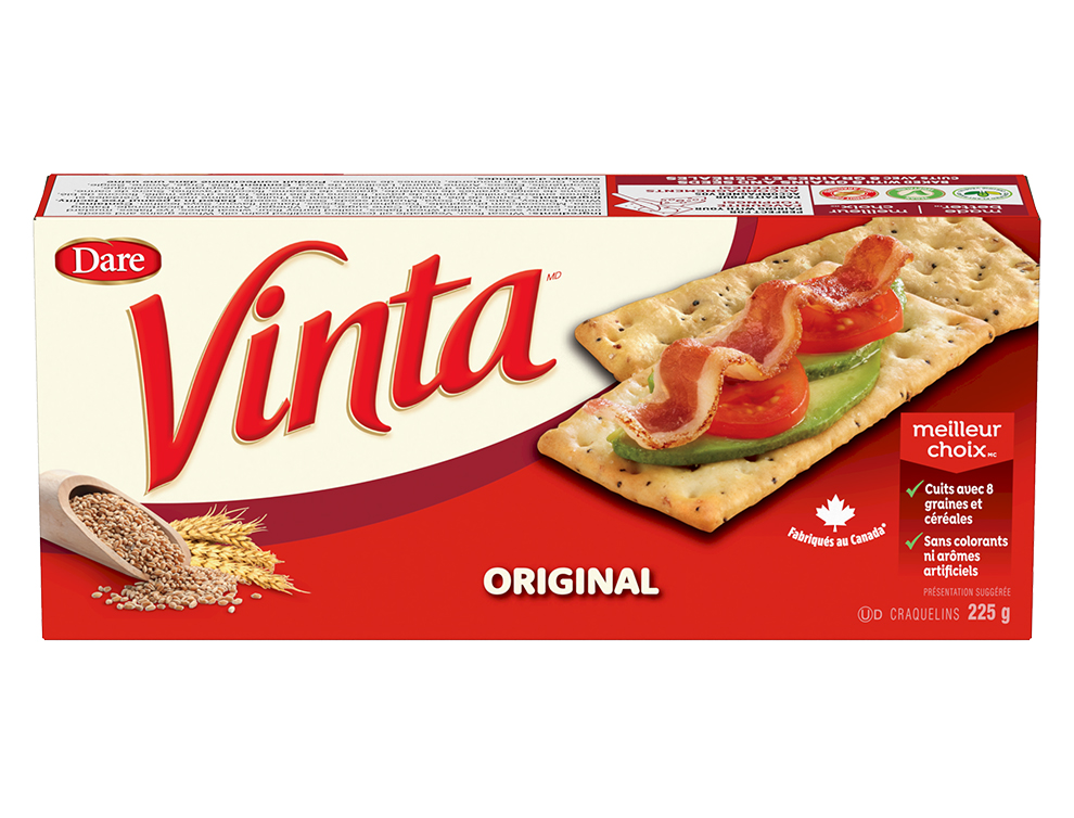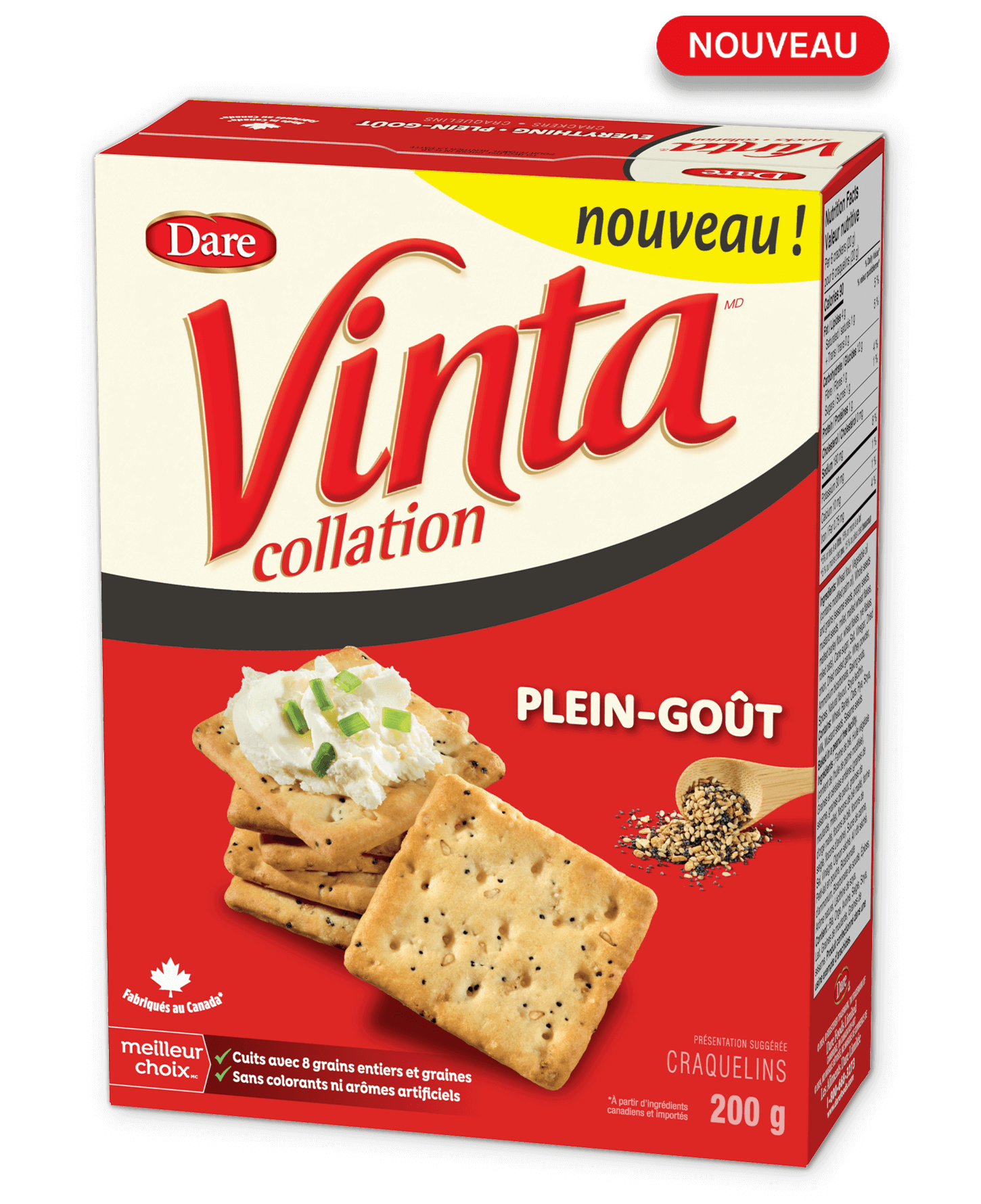Comblez vos fringales de collations avec notre nouvelle saveur de craquelins Vinta. Faits avec une recette secrète incluant une texture unique et une combinaison de grains et de graines, il vous sera impossible d’en manger juste un!